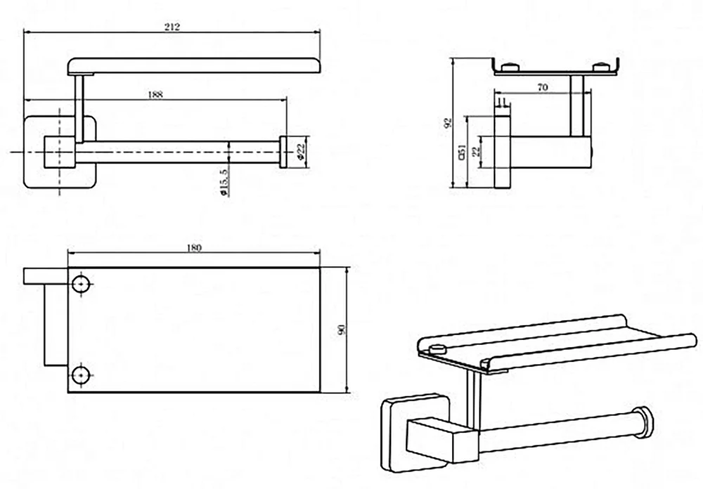 Бумагодержатель CeramaLux Quadro 61907B купить в Витебске, цена