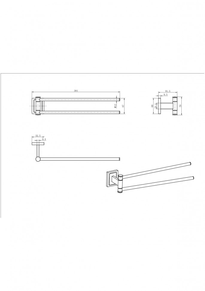 Полотенцедержатель двойной CeramaLux Gamma 12314 купить в Витебске, цена