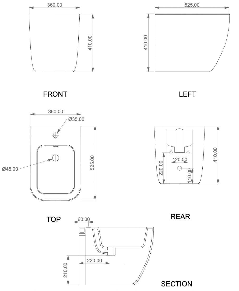 Биде приставное GSG Ceramic Design Brio BRBI01000