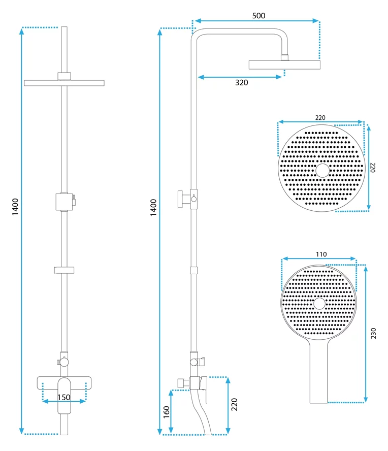 ручной душ, шланг 150 см |