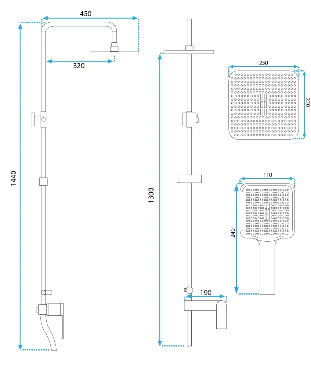 ручной душ, шланг 150 см |
