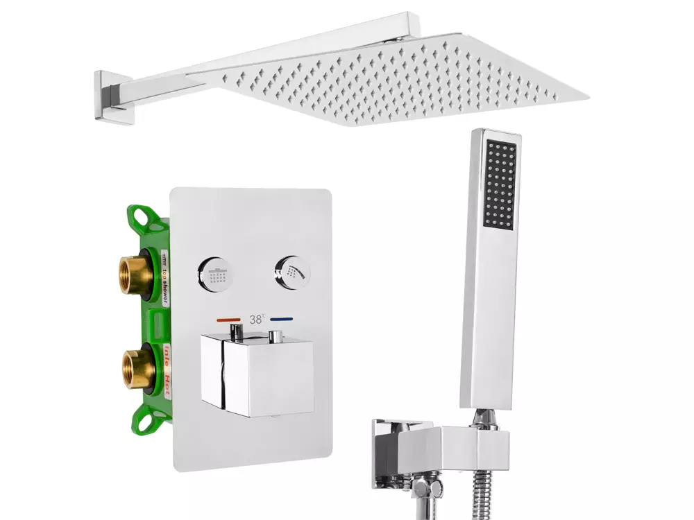 Эта душевая система может включать в себя различные режимы струи для персонализированного комфорта, удобный душевой гарнитур и термостатический смеситель для точной регулировки температуры воды. Хромированная отделка придает системе блеск и стиль, делая ее не только практичной, но и визуально привлекательной.