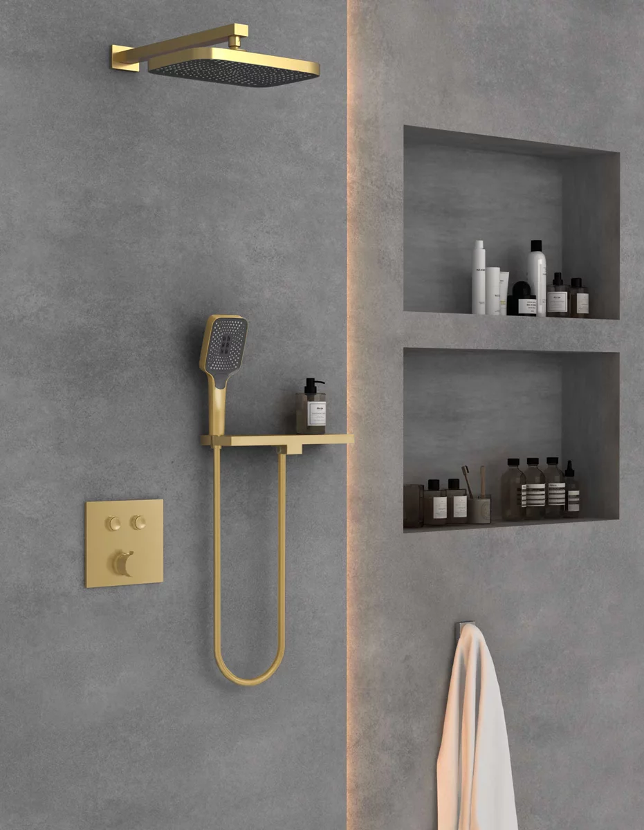 ручной душ, шланг, полка-держатель для лейки, скрытая часть |