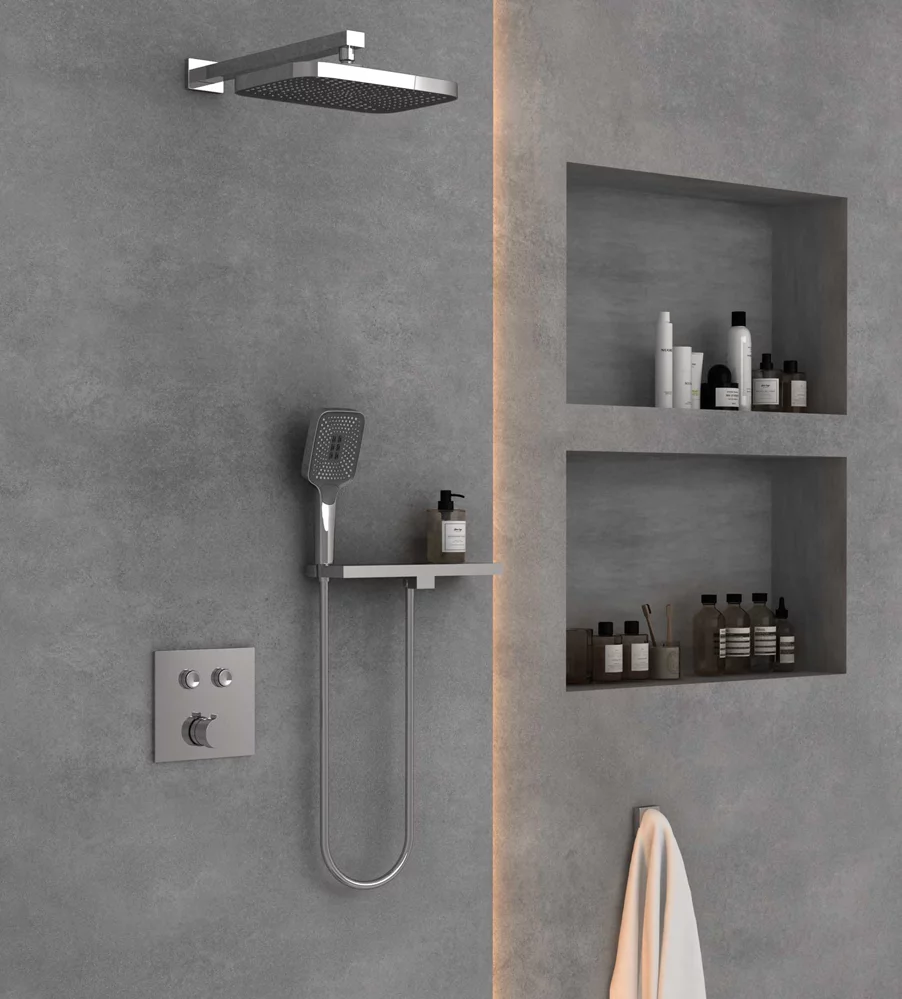 ручной душ, шланг, полка-держатель для лейки, скрытая часть |