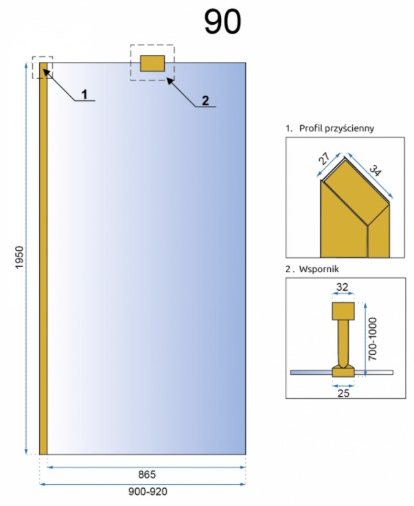 Душевая стенка Rea Aero Gold 90x195 K8442 купить в Витебске, цена