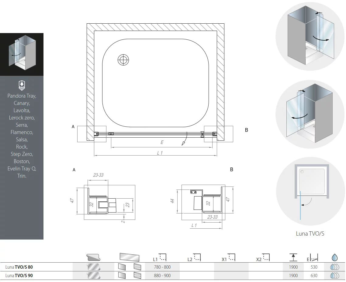 Душевая дверь Kolpa-San Luna TVO/S 90 silver transparent 534210 купить в Витебске, цена