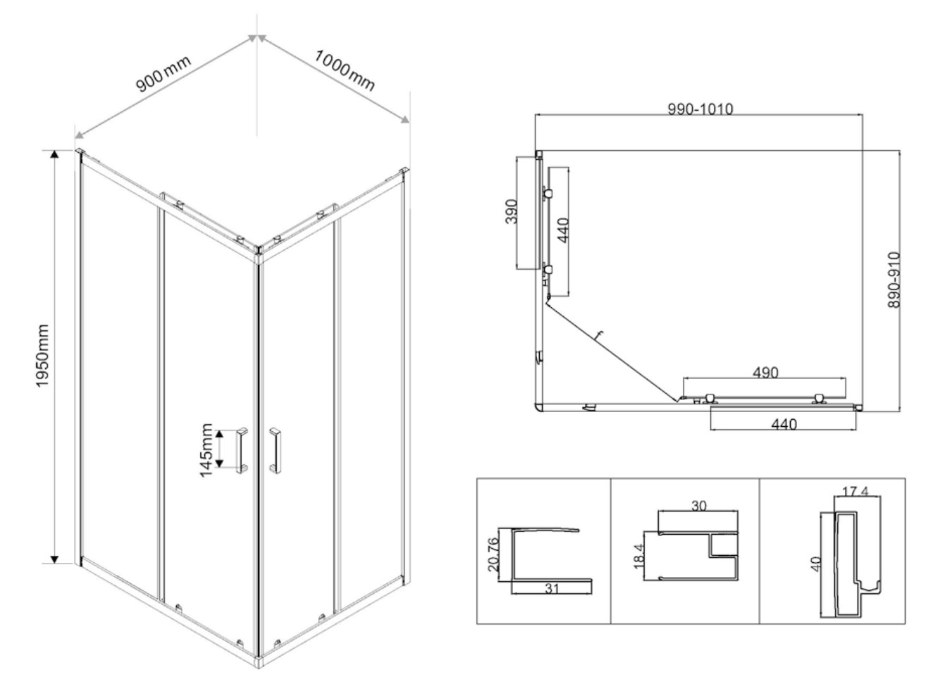 Душевой уголок Vincea City VSS-5CT9010CLGM купить в Витебске, цена