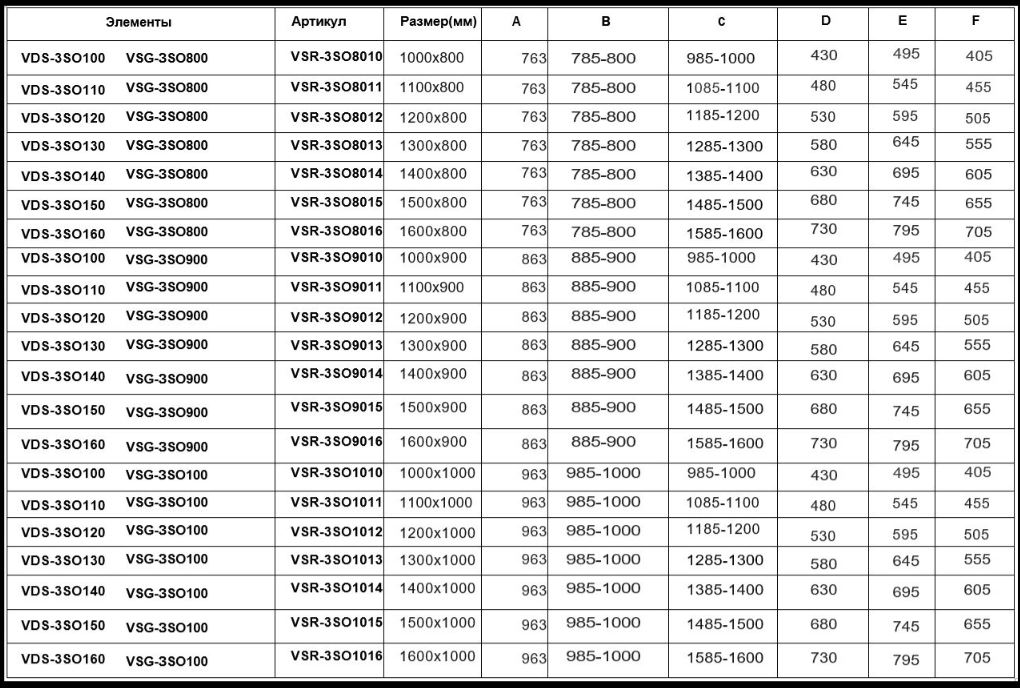 Регулировочные размеры