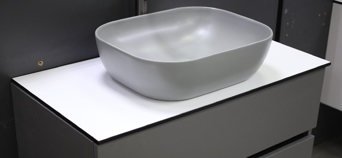Компакт-плита 900*485 белый матовый с черной кромкой купить в Витебске, цена