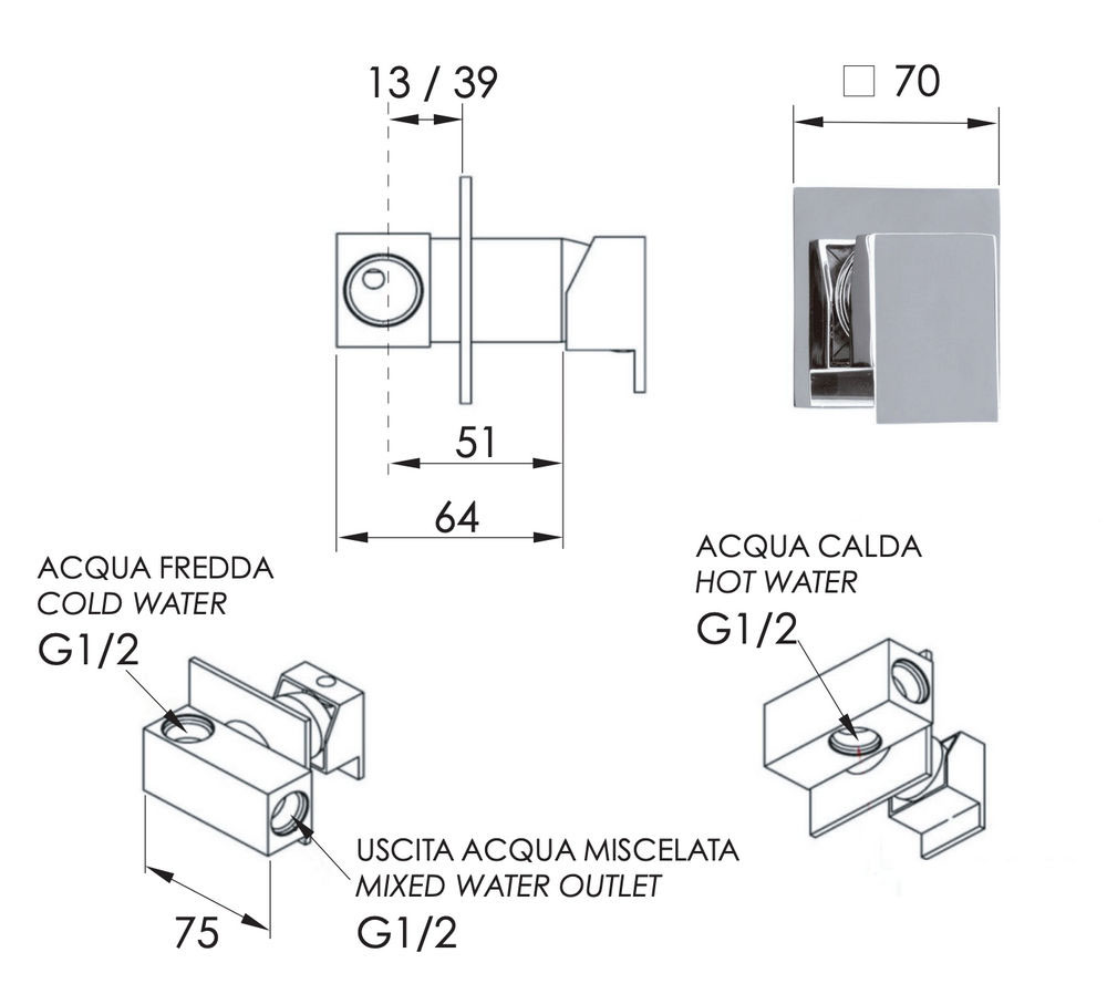Смеситель для гигиенического душа Remer Qubika Q63