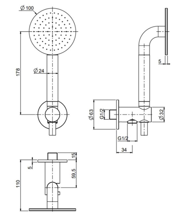 Ручной душ с держателем и выпуском QuadroDesign 1266AS
