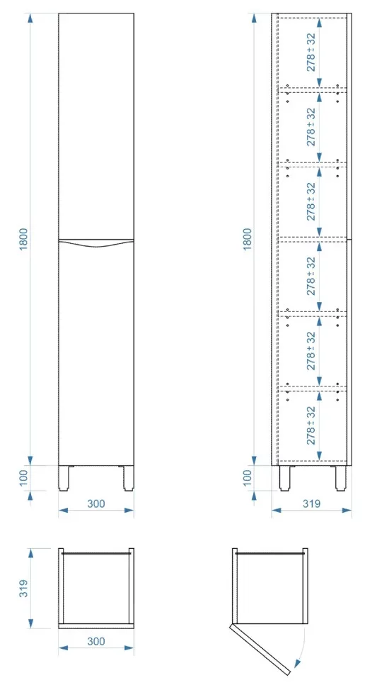 Пенал напольный Vela Каскад Чикаго 30Н (двери) петли левые RS643484