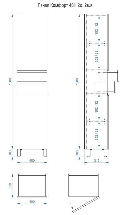 Пенал напольный Vela Мира 40Н2 (двери и ящики) RS623487 купить в Витебске, цена