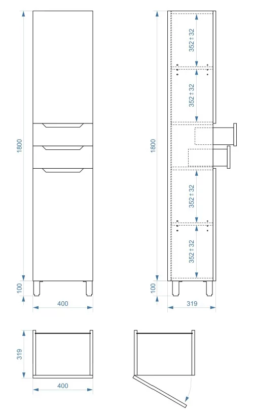 Пенал напольный Vela Верона 40Н2 (двери и ящики) петли левые RS633479 купить в Витебске, цена