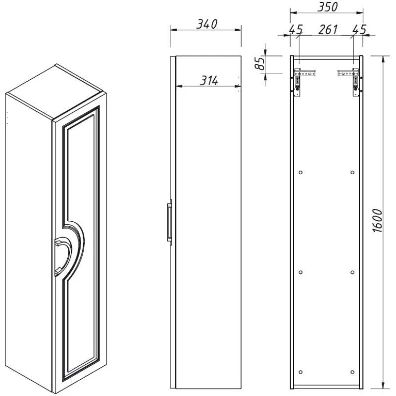 Пенал подвесной Caprigo Valletta R 35350R-TP811