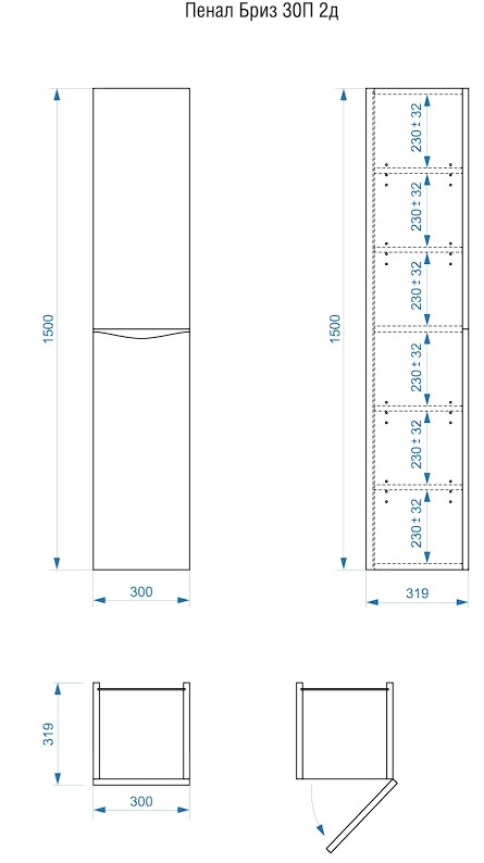 Пенал подвесной Vela Бриз 30П (двери) петли правые RS623466 купить в Витебске, цена