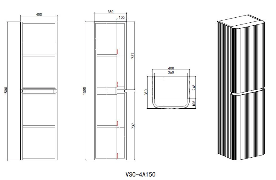 Пенал подвесной Vincea Alto VSC-4A150MG-L светло-серый матовый купить в Витебске, цена