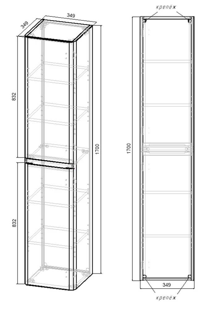 Пенал подвесной Vincea Vico Carbone VSC-2V170CN купить в Витебске, цена
