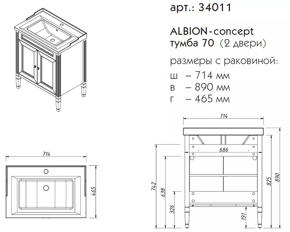 Тумба напольная Caprigo Albion Concept 70 34011-TP811 купить в Витебске, цена