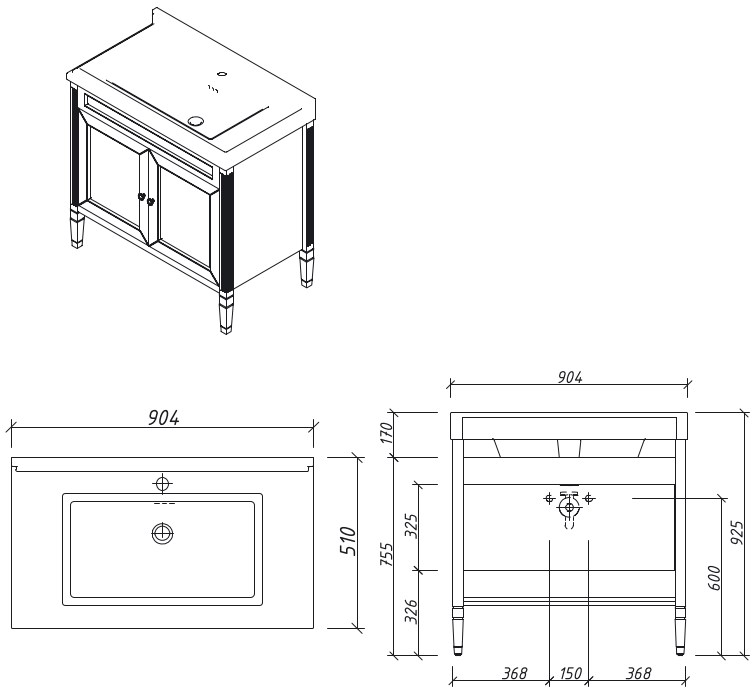 Тумба для раковины 90см с 2дверьми, выпускается под заказ в отделках Эмалями из Реестра CLASSIC . внутри 1 полка