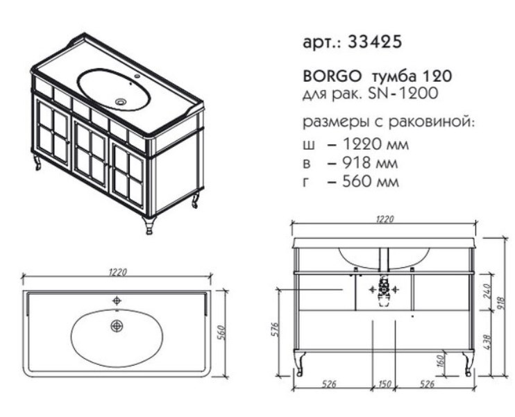 Тумба напольная Caprigo Borgo 120 33425-B136 купить в Витебске, цена