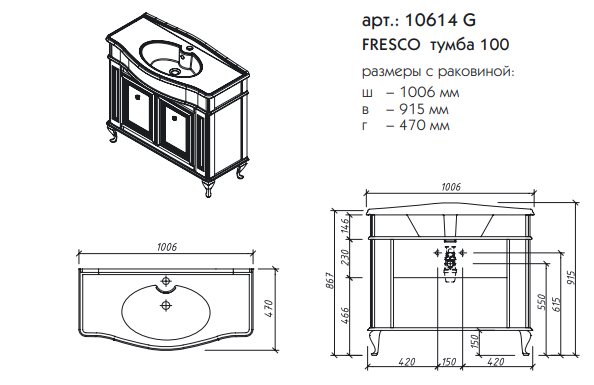 Тумба напольная Caprigo Fresco 100 10614G-B016 купить в Витебске, цена