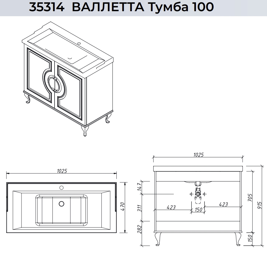 Тумба напольная Caprigo Valletta 100 35314-TP811 купить в Витебске, цена