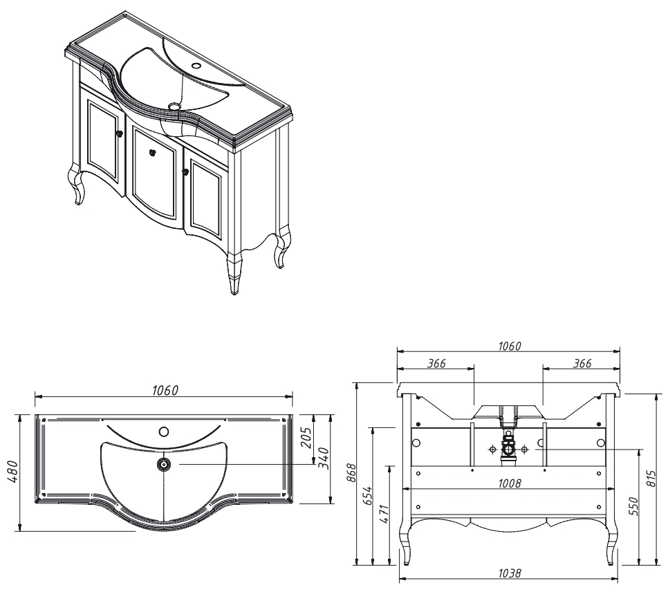 Тумба напольная Caprigo Verona 105 33520-TP813 купить в Витебске, цена