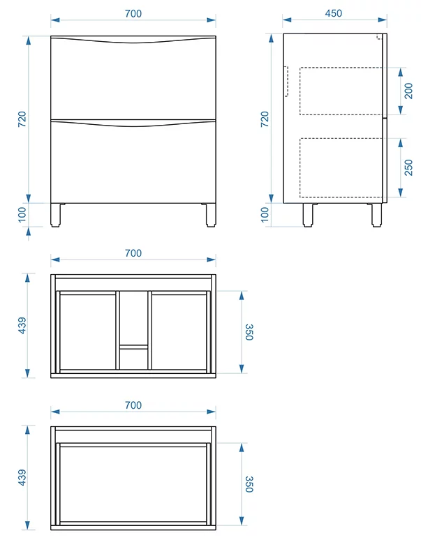 Тумба напольная Vela Бриз 70Н без планки под Classica TU27109