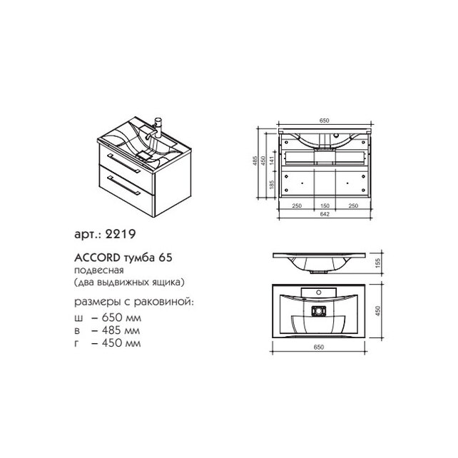 Тумба подвесная Caprigo Accord 65 2219-TP810 купить в Витебске, цена