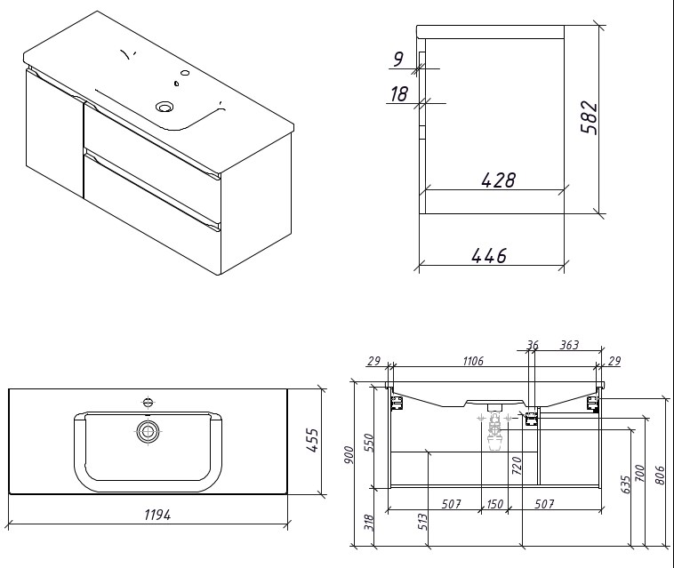 Тумба подвесная Caprigo Forte 120 36117L EML-B066 купить в Витебске, цена