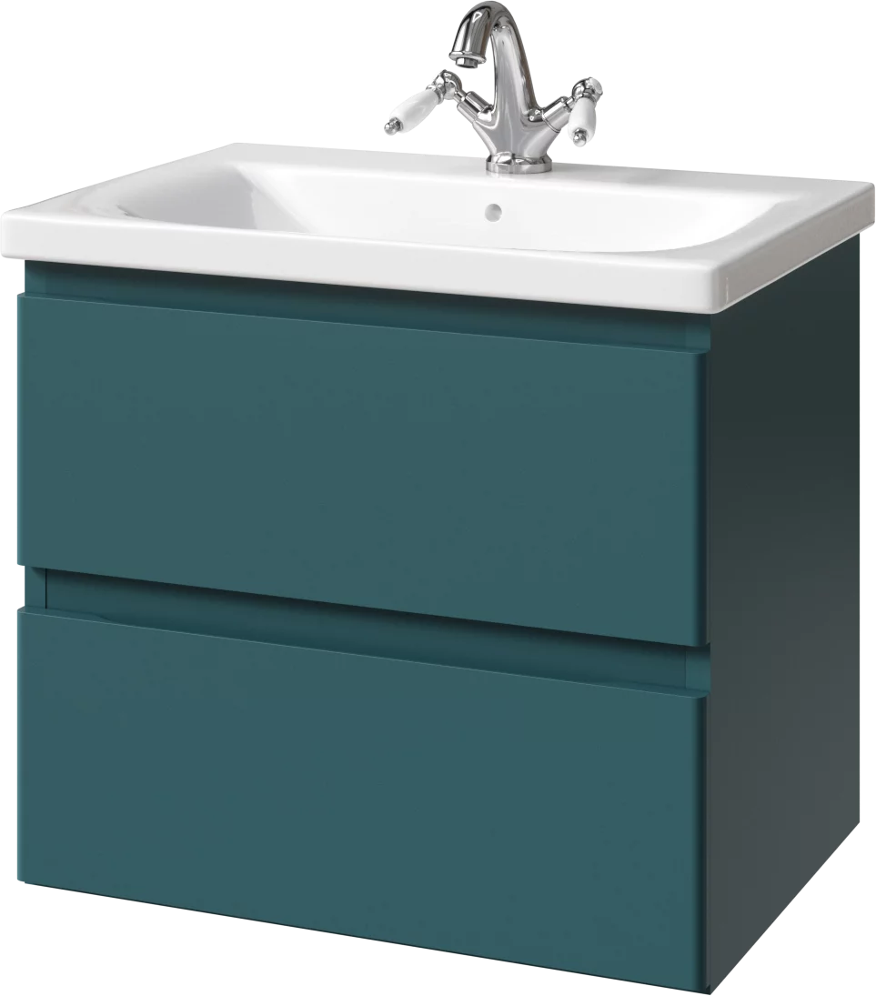 Тумба подвесная для раковины 65 см с 2 ящиками. Ручки интегрированные в фасадах. Выпускается в Матовых и Текстурированных отделках из реестра MODERN (ограничение по глянцевым отделкам).