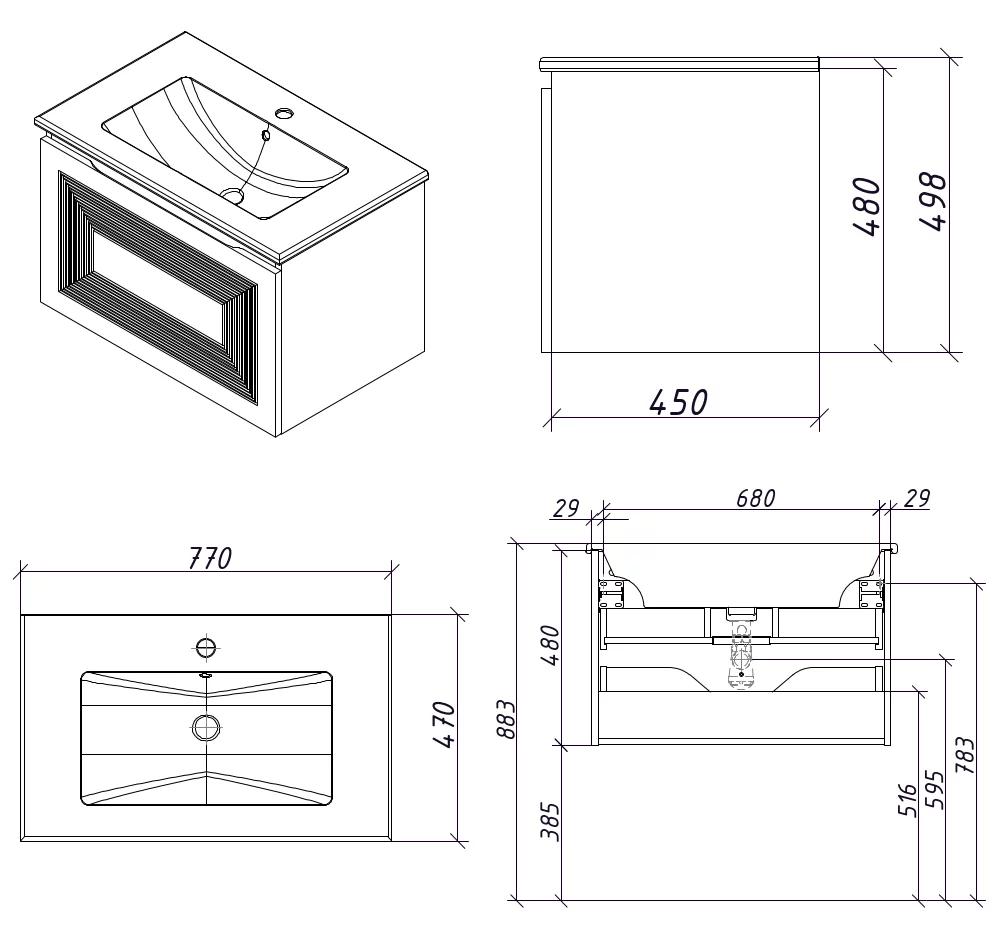 Варианты раковин: Эйфория-80