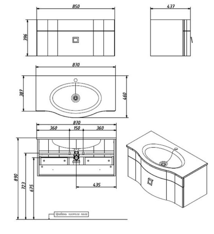 Под умывальник шириной, см