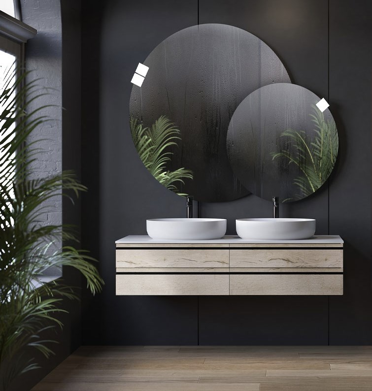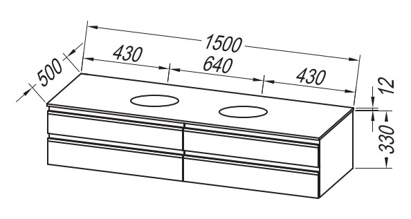 Alexis OA в различных размерах представляет собой подвесную тумбу и столешницу из искусственного камня Керрок.
