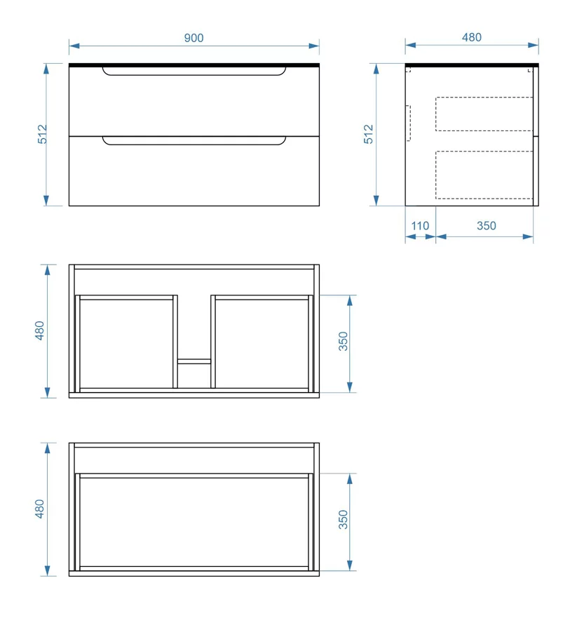 Тумба подвесная Vela Венеция 90П под столешницу белый матовый TU27150