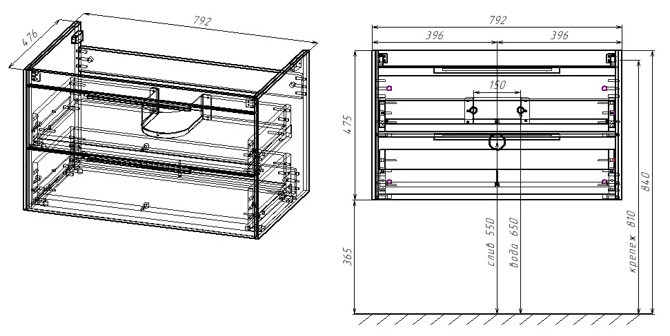 Тумба подвесная Vincea Chiara 2D 800 G.Stone VMC-2C2800GS купить в Витебске, цена