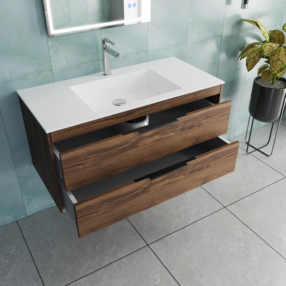 Мебель может быть укомплектована на выбор белой, чёрной или серой раковиной