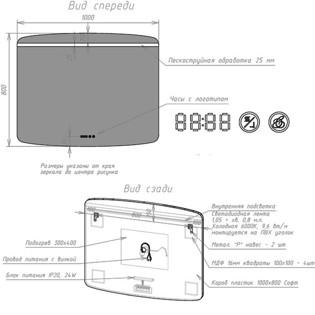 встроенная подсветка,подогрев (антизапотеватель),часы |