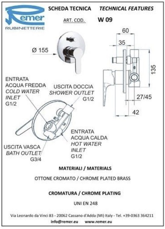 Набор смесителей для ванной комнаты Remer Winner W0910315RMOI купить в Витебске, цена