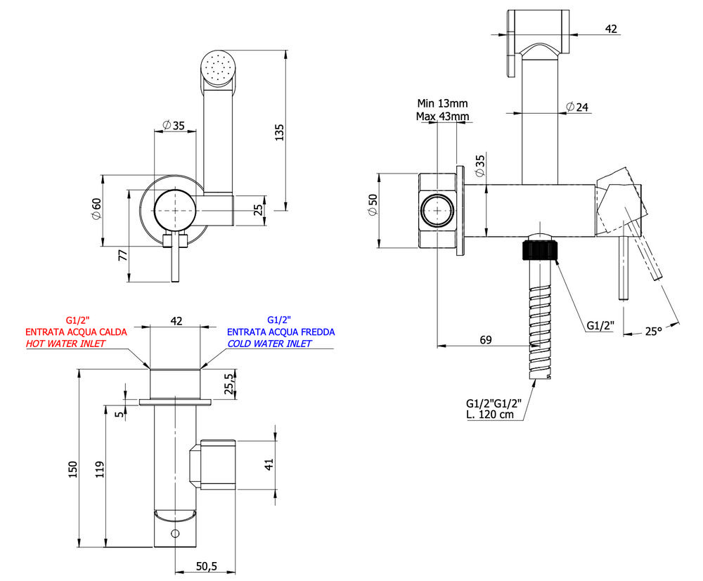 Гигиенический душ Remer X Style X65C25W