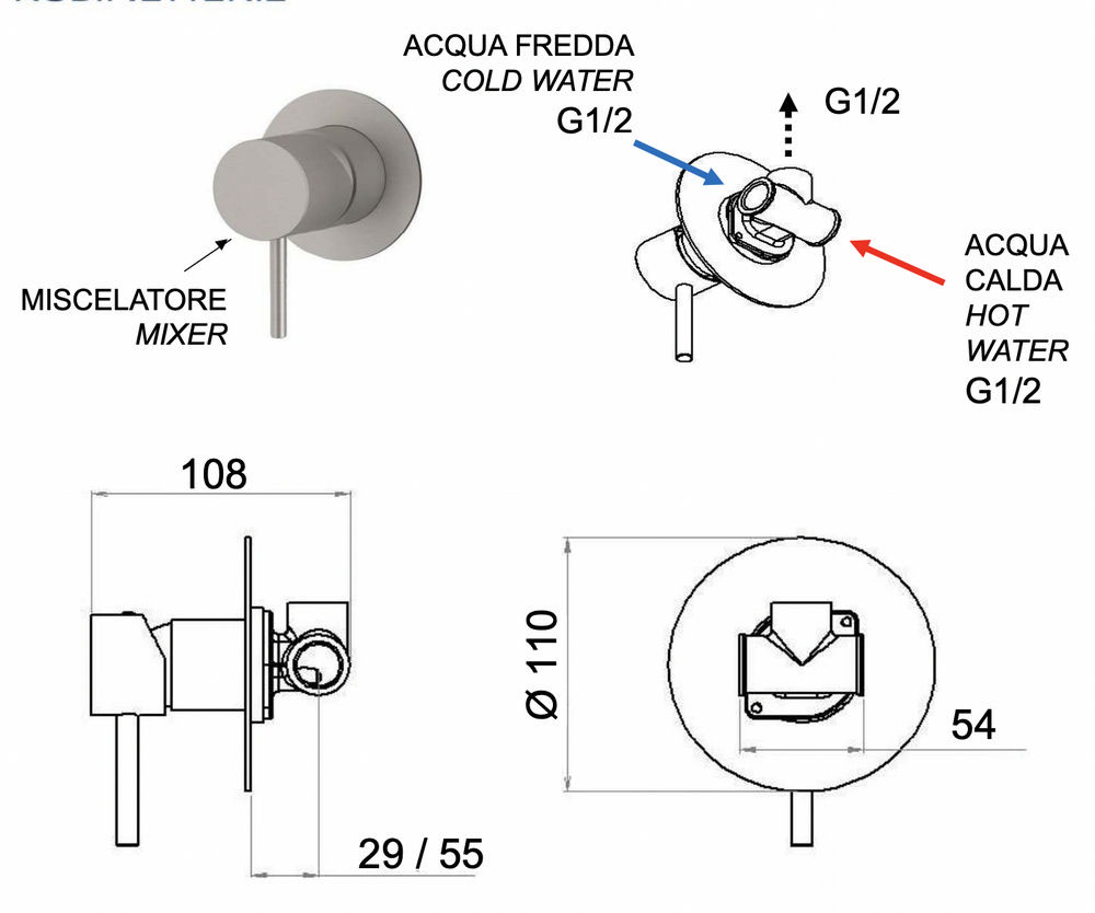 Смеситель для душа Remer X Style INOX SSX30L, нержавеющая сталь купить в Витебске, цена