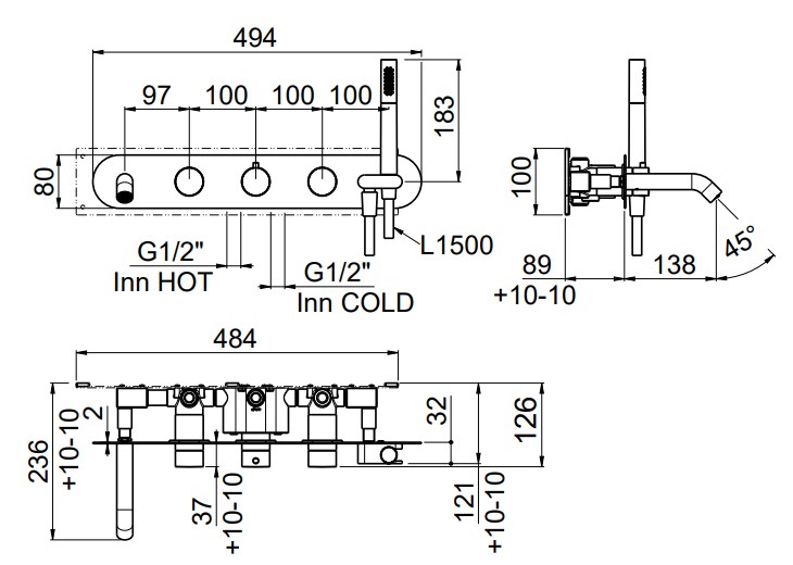 ручной душ, шланг 150 см, держатель лейки |