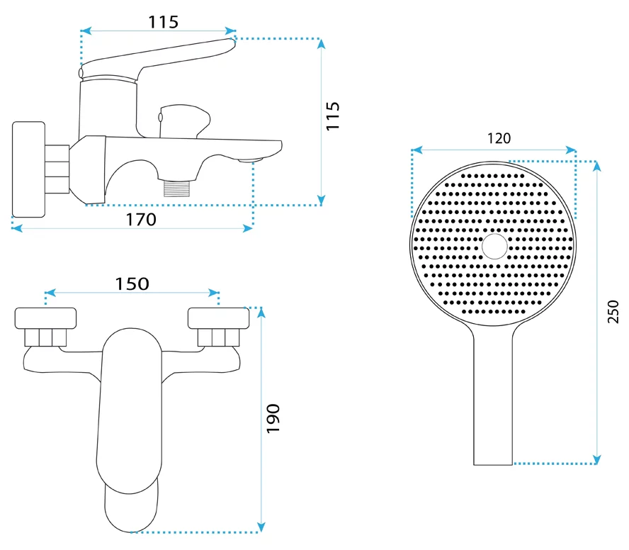 ручной душ, шланг 150 см, держатель лейки |