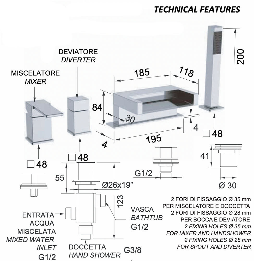 Смеситель для ванны Remer Qubika Cascata QC06DO, золото глянцевое