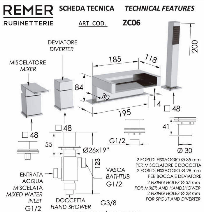 Смеситель для ванны Remer ZC06