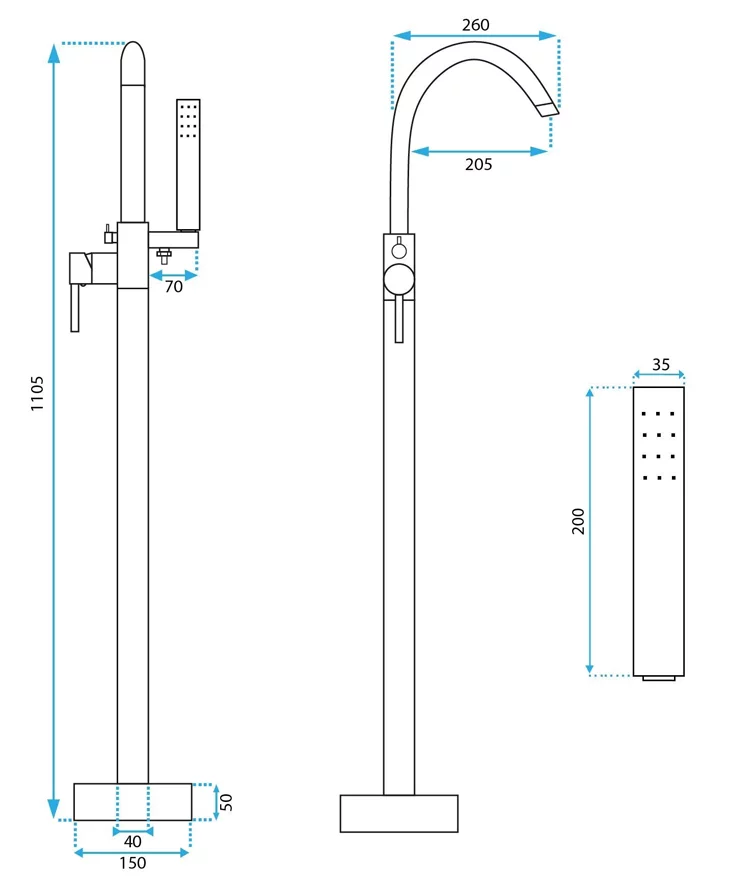 Смеситель для ванны Rea Mono black matt B2714 купить в Витебске, цена