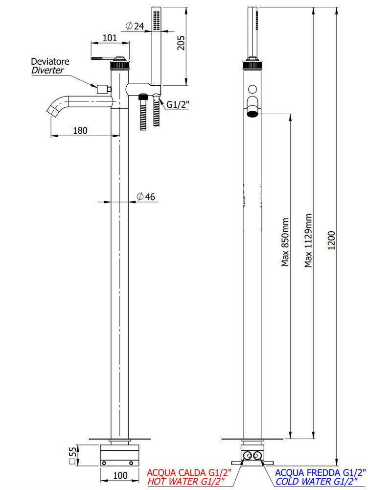 Смеситель для ванны Remer Atelier AL08BG, золото брашированное
