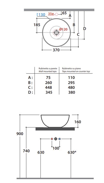 Умывальник Globo T-edge B6T37BI купить в Витебске, цена