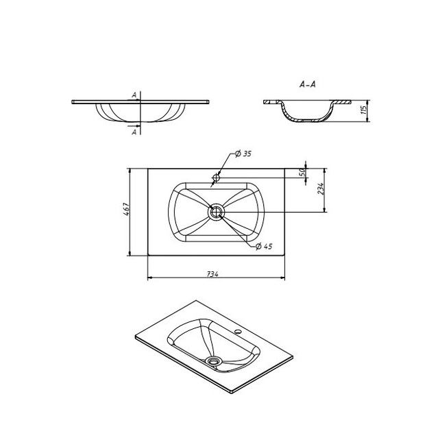 Умывальник Caprigo Novara 75 GC18R 34911 купить в Витебске, цена
